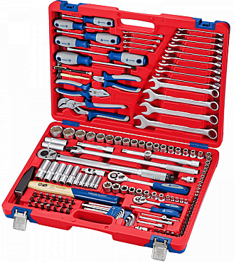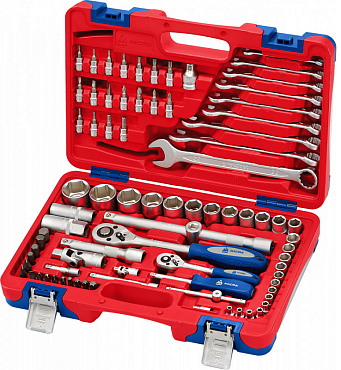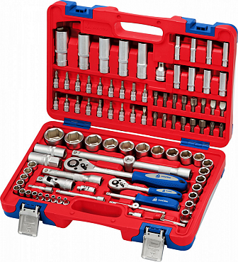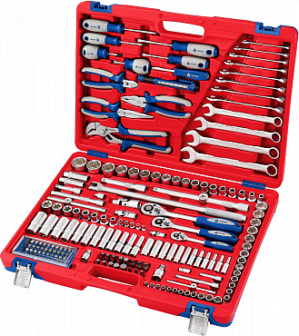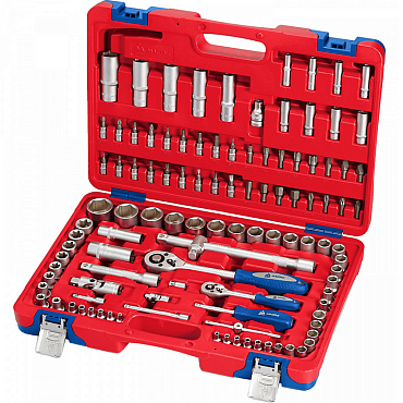 Унив-ный набор ин-та торц. головки 4-32мм, E4-Е24, 1/4", 3/8" и 1/2"DR и ак-ры к ним, комб-ные ключи 8-19мм, от-ки и угл. ключи 1,5-10мм, 131 предмет
