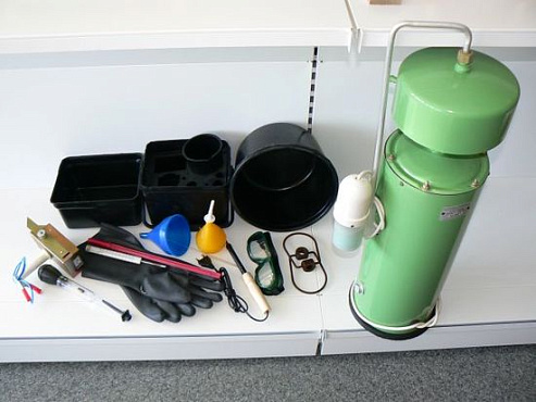 Комплект аккумуляторщика, модель Э-412, предназначен для обслуживания стартерных аккумуляторных батарей с электрической ёмкостью от 45 до 190 А·ч с плотностью электролита от 1,18 до 1,32 г/см и номинальным напряжением 12 В, непосредственно на транспортных средствах в условиях автотранспортных предприятий и станций технического обслуживания.