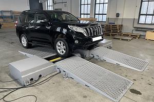 Конструктивные особенности новой модификации универсального диагностического комплекса видны сразу: стенд супернизкий, с укороченными аппарелями, установка моторов и датчиков сбоку и т.д.